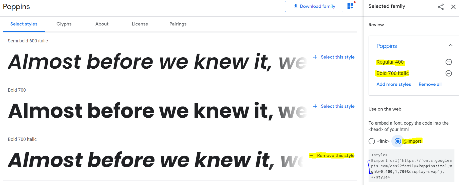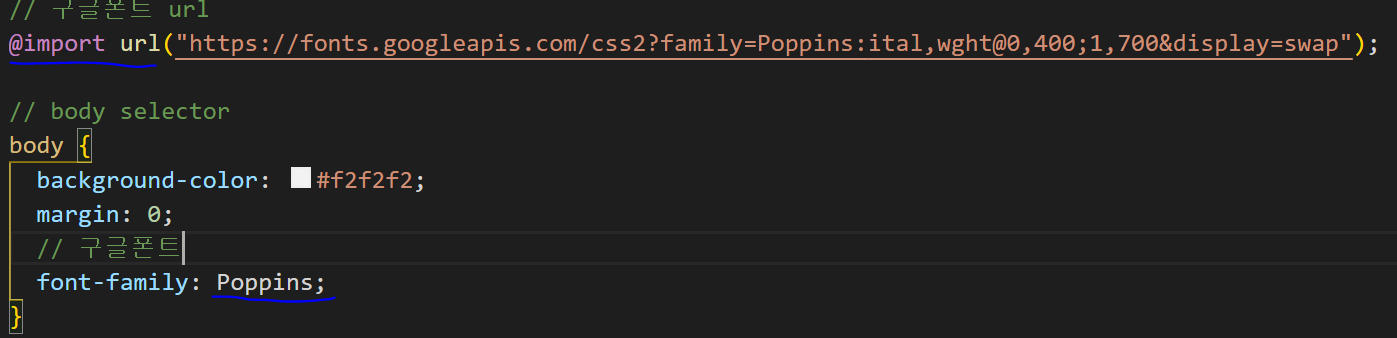 구글에서 폰트 url을 복사해 css파일에 붙여넣어준다.