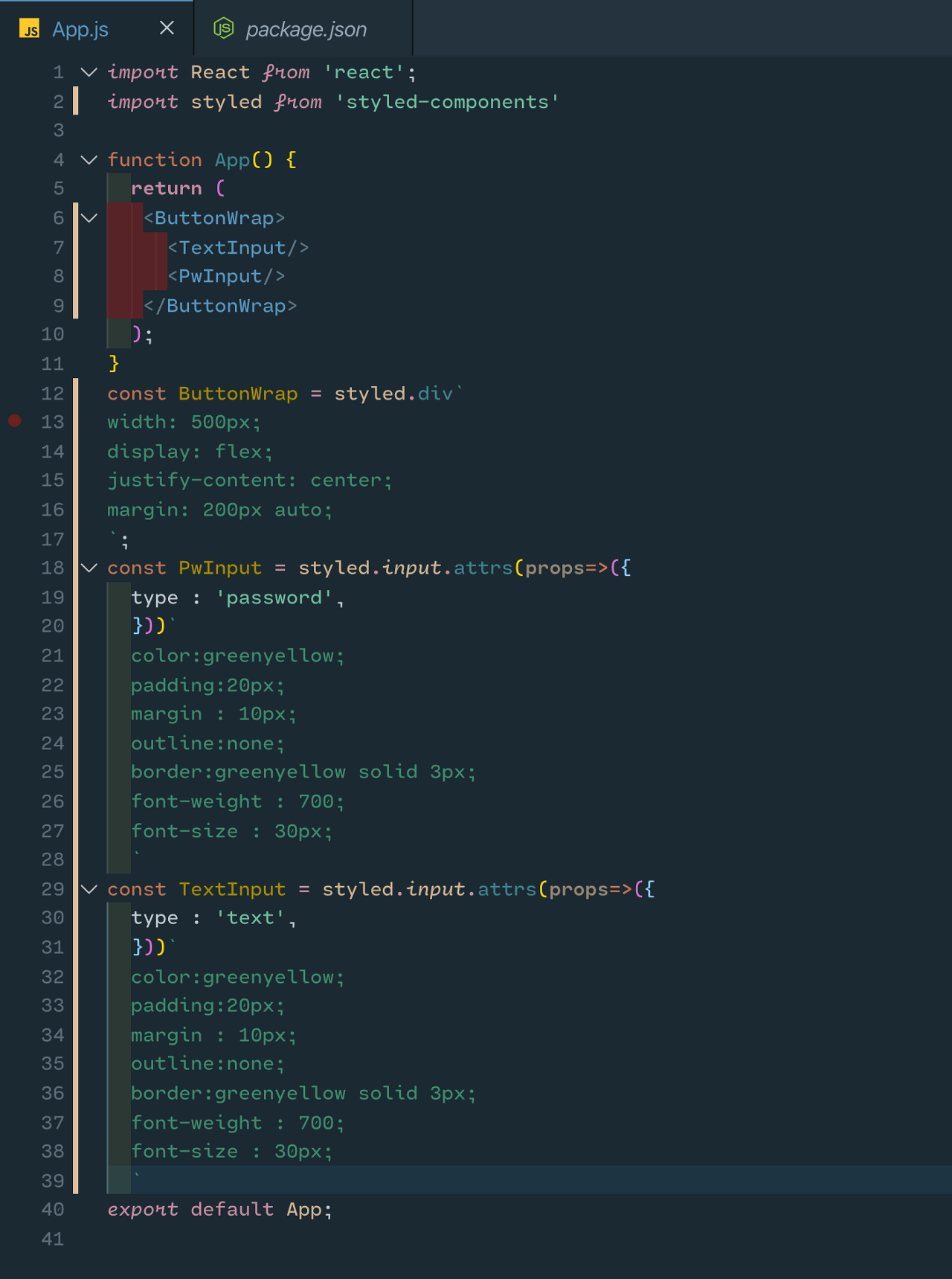 <ButtonWrap> <!-- input 태그 타입속성 넣듯이 해도 잘 된다!--> <Input type='password'/> <Input type='text'/> </ButtonWrap>