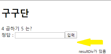 정답 form 밑에는 resultDiv 가 있어서 정답 여부를 출력하게끔 하였습니다.