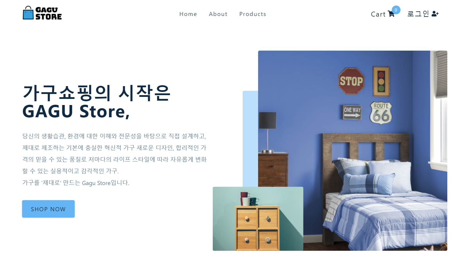 가구 이커머스 사이트를 구현하는것을 목표로 하였습니다. React-Router-dom을 이용하여 각각 페이지를 나누고 auth0웹 서비스를 이용하여 로그인 기능을 추가하였습니다. 상태관리는 context / reducer을 사용하였습니다. 여러 페이지에 들어가는 공통된 로직들을 한곳에 모아 관리 했습니다.