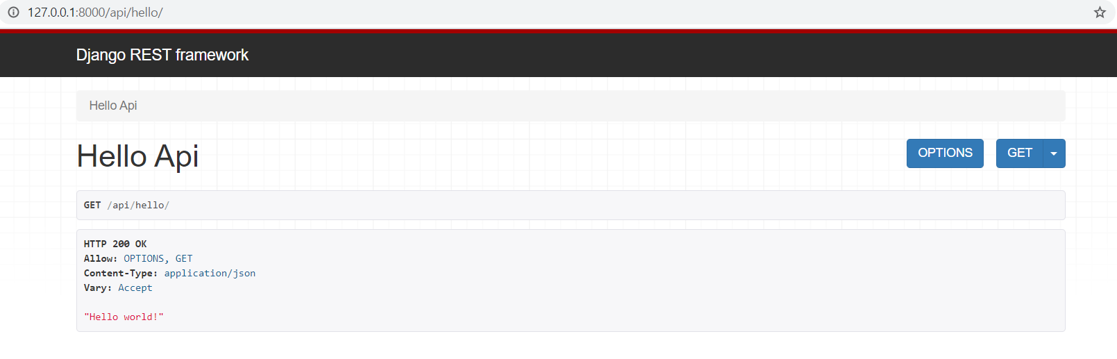 - GET 127.0.0.1:8000/api/hello/로 요청을 보내면 hello world를 print하는 api를 만들겠습니다.
