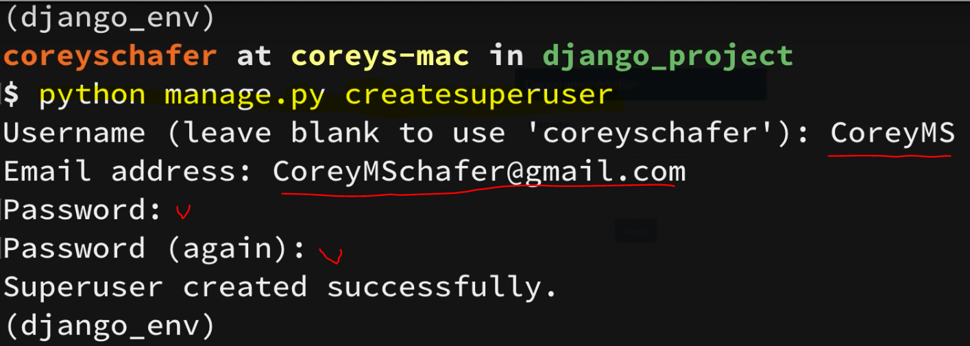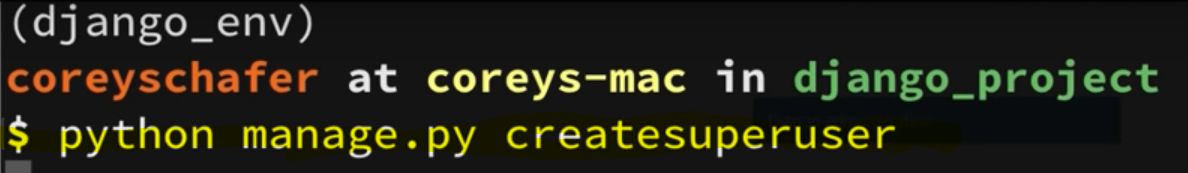 6. 아래 createsuperuser명령어를 이용해 관리자 아이디를 생성해준다.
