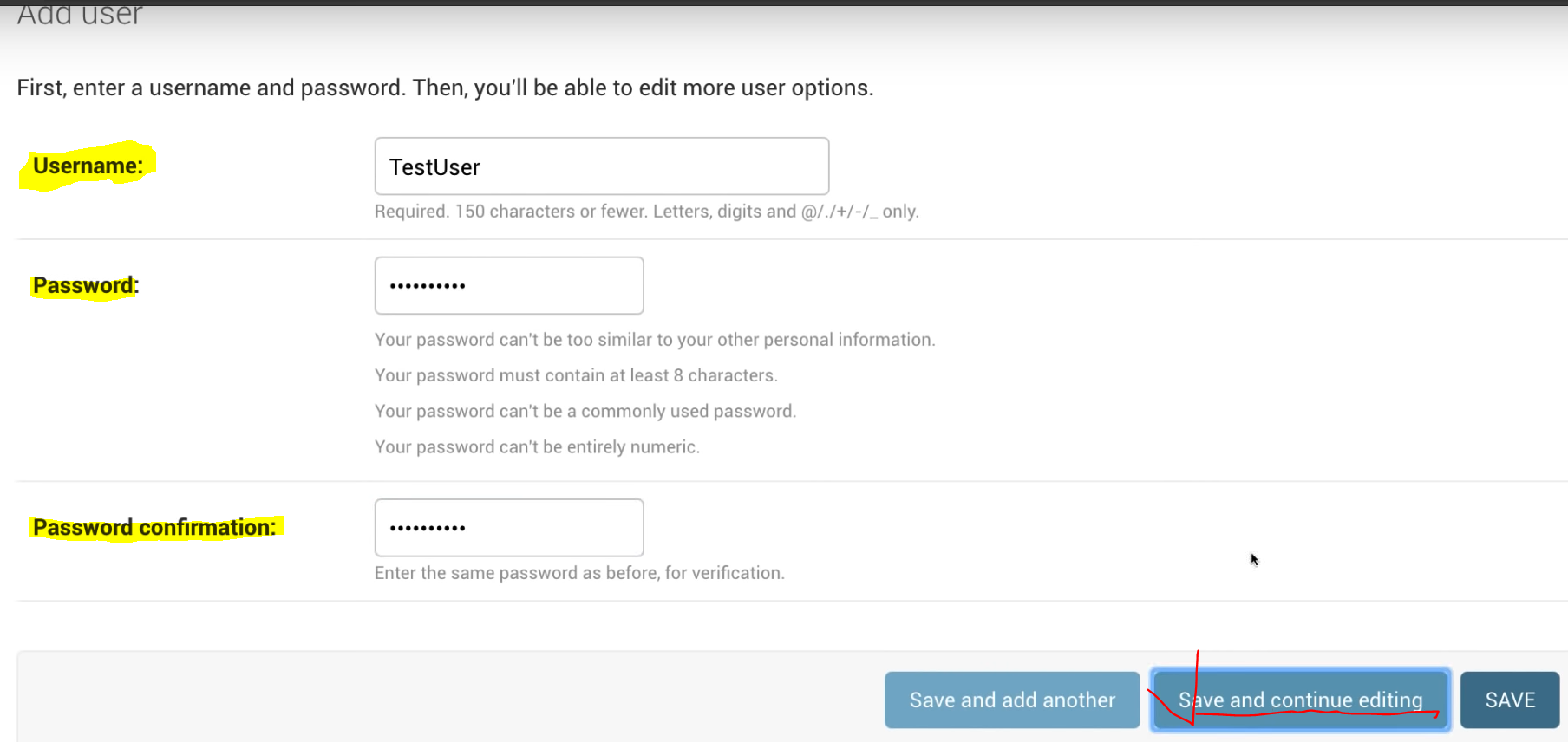 9. 새로운 USER를 추가해준다.