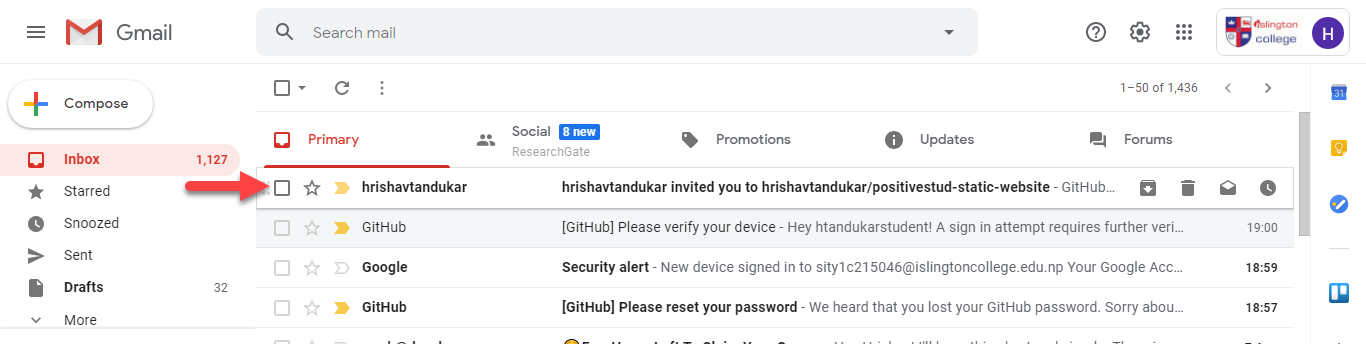 Step 1: Open Gmail and click on the mail which comprises of invitation for being a collaborator.